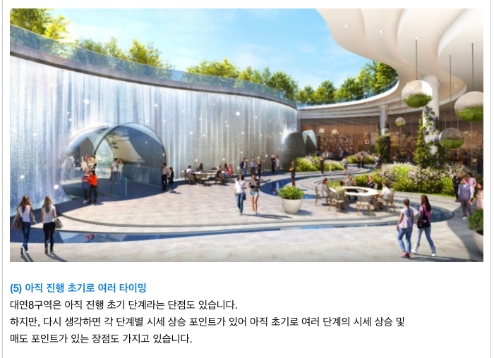 대연8구역 재개발의 간략한 특징들입니다.