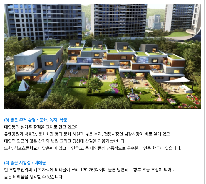 주변의 좋은 녹지, 문화 공간들이 있고 대연동이라는 실거주 환경이 좋은 곳에 위치하며