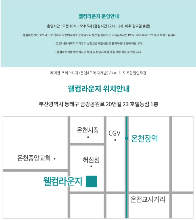 래미안포레스티지는 현재 웰컴 라운지를 아래와 같이 운영하고 있습니다.
