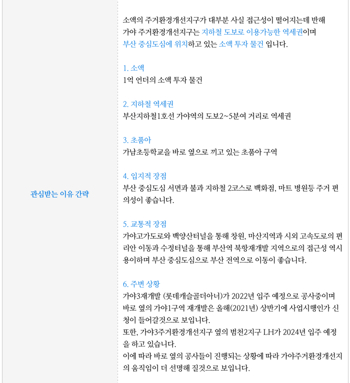 가야2주거환경개선지구에 대해 소개해 드리고 물건 정보 드립니다.