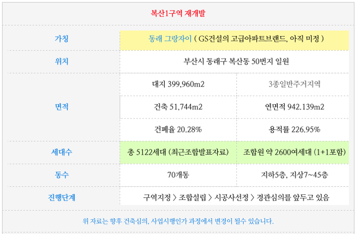 동래구의 높은 시세를 감안하면 복산1구역 재개발은 상대적으로 저평가 되어 낮은 시세를 가지고 있습니다.