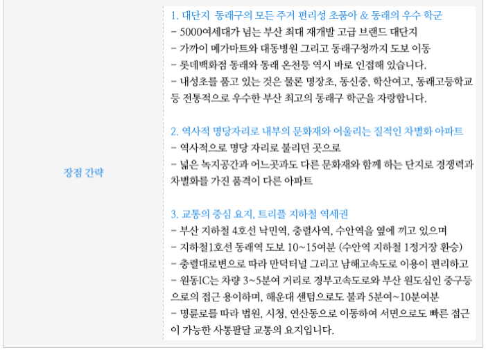 부산에서 실거주 환경 및 학군이 좋다는 동래구에 위치해 있다는 것이 가장 큰 장점 입니다.