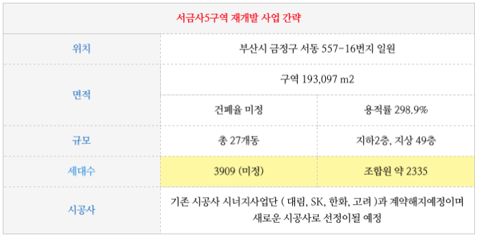 그 중에서 서금사5구역의 입지나 향후 가치등으로 인해 선택을 많이 받게 되었었습니다.