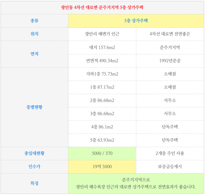 4. 광안리 해수욕장 인근 전면좋은 도로변 5층 상가주택