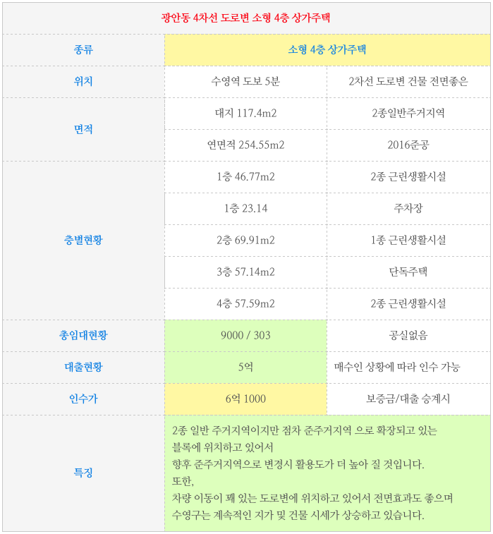수영구 광안동 상가주택 물건 들을 소개해 드리겠습니다.