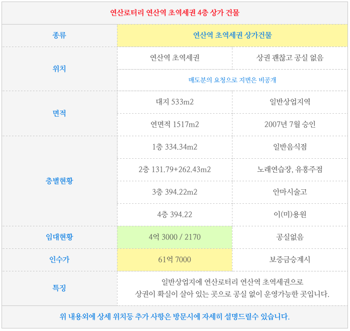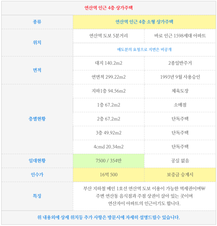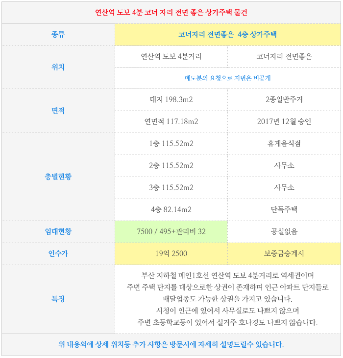 3. 연산역 도보 4분 코너 자리 전면 좋은 4층 상가주택 물건