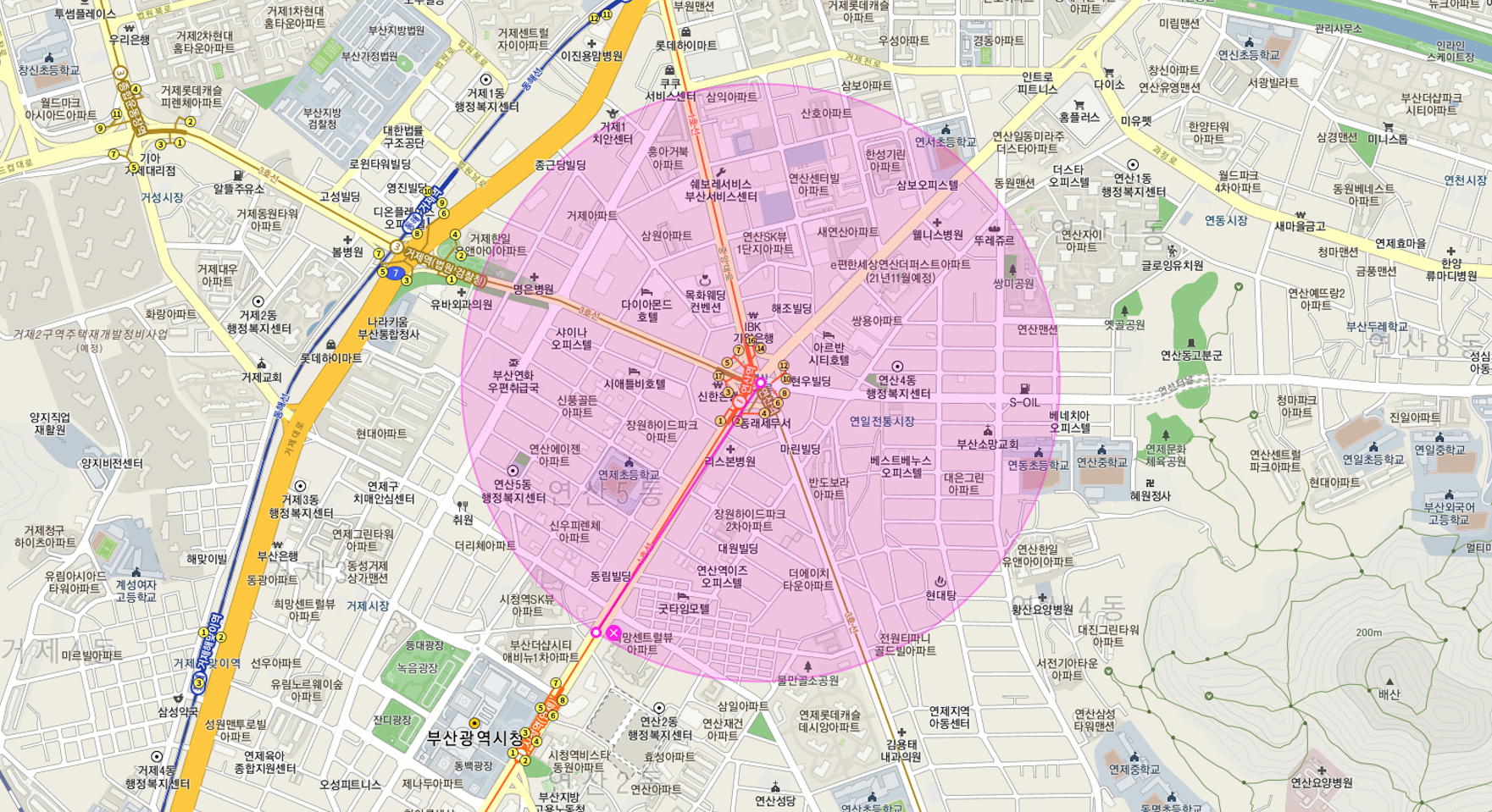 - 주변 고기집 등 음식점과 주점 상권이 살아 있는 곳이며 인근에 대단지 연산자이 아파트가 있서서