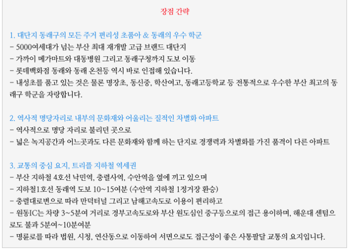 부산에서 실거주 환경 및 학군이 우수한 동래구에 위치해 있다는 것이 가장 큰 장점 입니다.