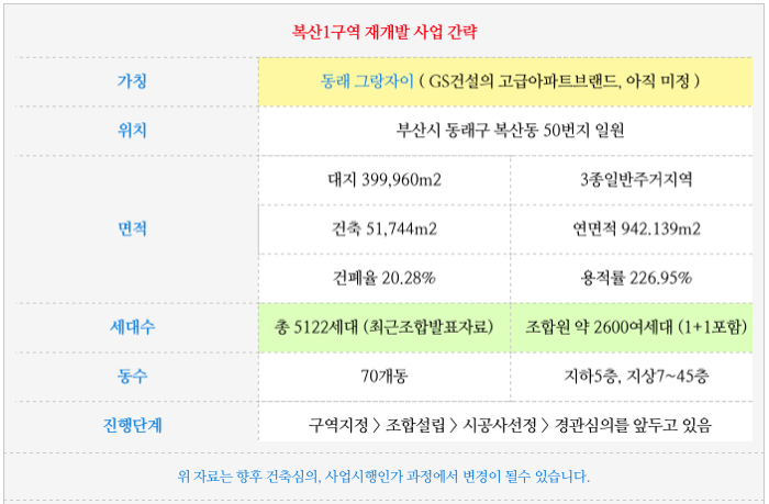 동래구 복산1구역 재개발 진행일정 및 가능매물