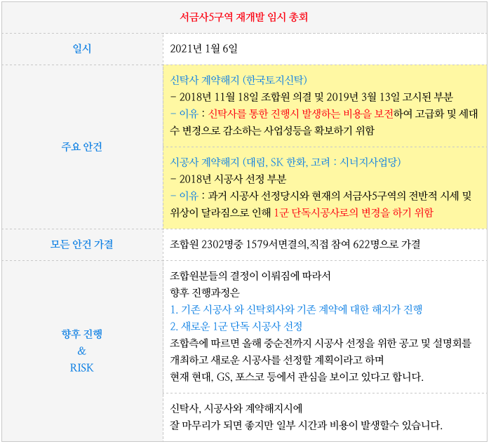 - 서금사6구역 재개발 역시 시공사 변경 등을 준비하고 있다고 합니다.