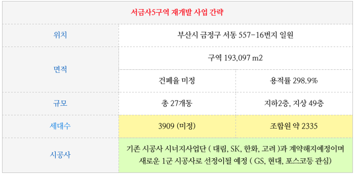 시공사변경중인 서금사5구역 재개발 : 매물UPDATE