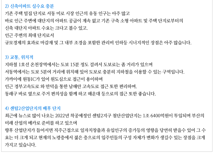 또한, 서동지역에는 신축 대단지 브랜드 아파트가 들어선적이 없어 수요 역시도 충분할것으로 보입니다.