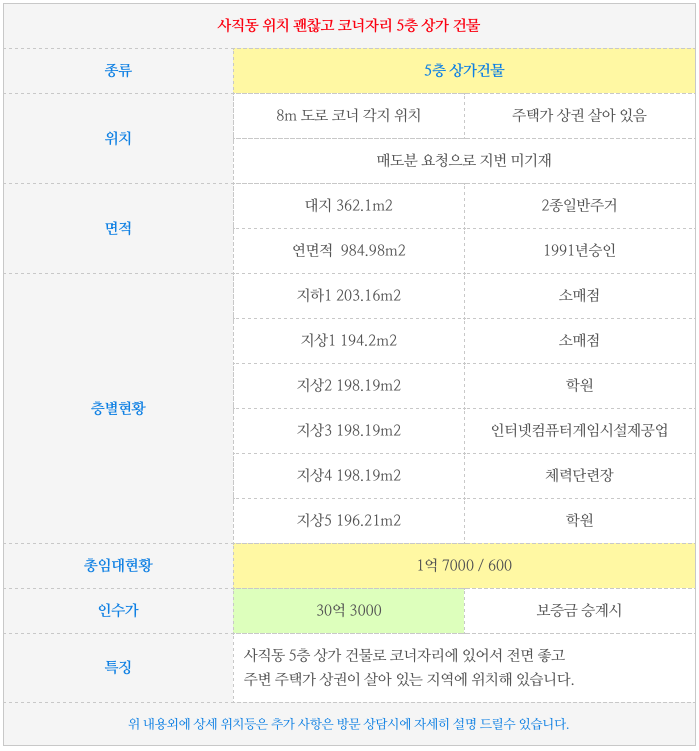 3. 위치 괜찮은 코너자리 5층 상가 건물