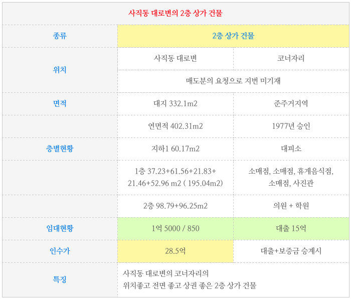 부산 동래구 사직동 상가건물, 상가주택 매매