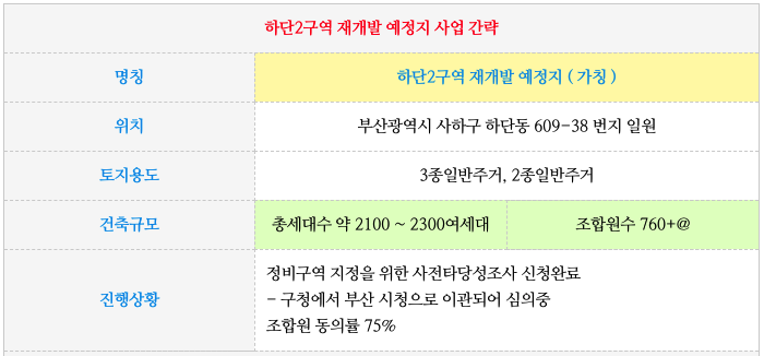 사하구 하단2구역 재개발 예정지에 대해 궁금 하신 점은 연락주시면 자세히 설명 드리겠습니다.