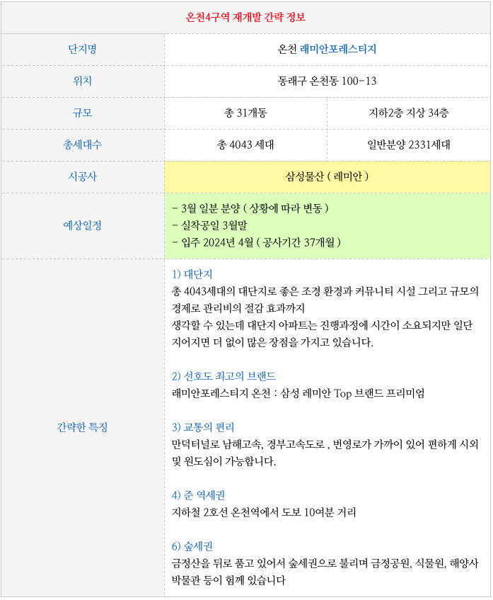 온천4구역 재개발 ( 래미안포레스티지 ) 물건 안내 |