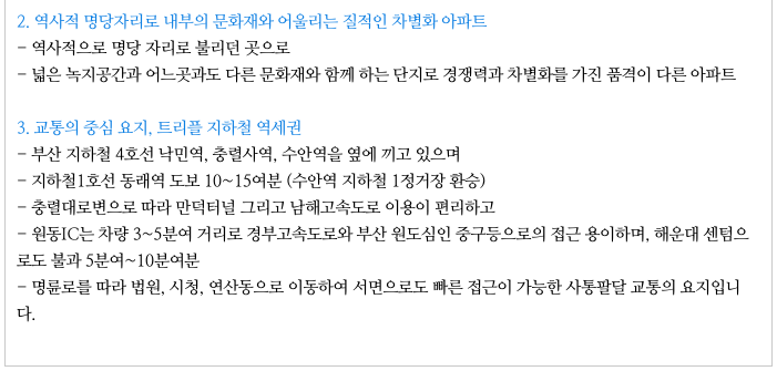 부산에서 실거주 환경 및 학군이 우수한 동래구에 위치해 있다는 것이 가장 큰 장점 입니다.