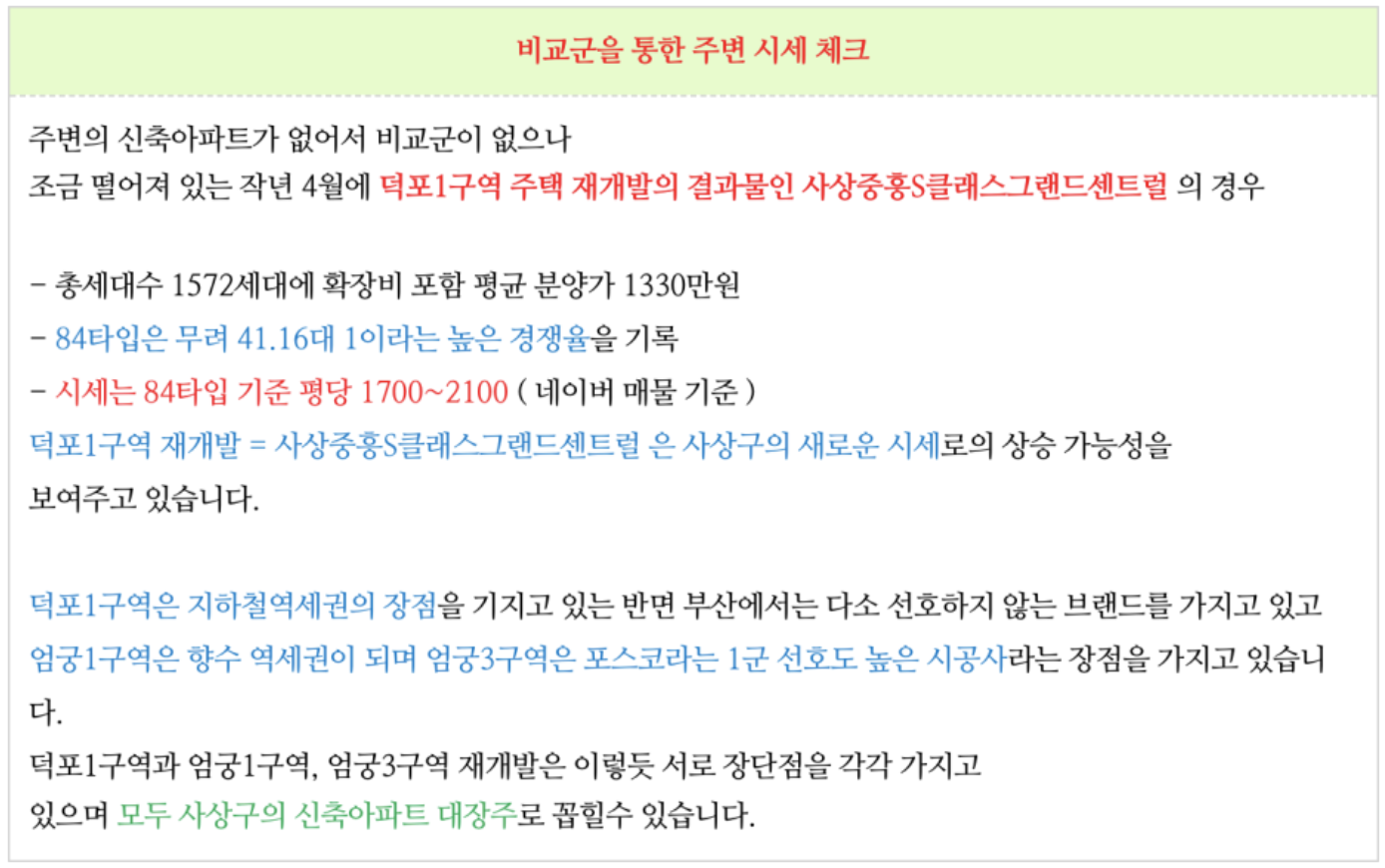 부산에서 선호도가 좋은 포스코 더샾 브랜드를 가지고 있는 것이 가장 큰 장점이며
