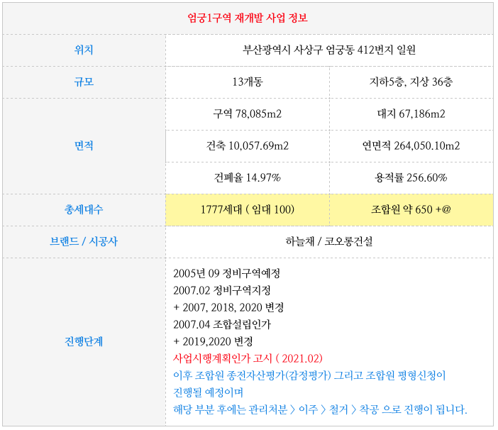 엄궁1구역, 엄궁3구역의 사상하단선등 개발호재와 타입별 세대수 등은 아래 페이지를 통해 확인이 가능하십니다.