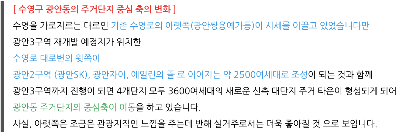 이미 구역을 아시는 분들을 위해 광안3구역 재개발 예정지 물건 부터 소개해 드립니다.