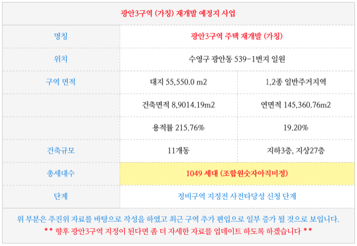 광안3구역 (가칭) 재개발 예정지 에 대해 궁금하시거나