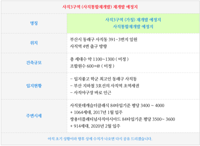사직통합재개발 (사직3구역) 재개발 예정지의 진행상황등은 아래 페이지를 통해 추가 확인이 가능 하십니다.