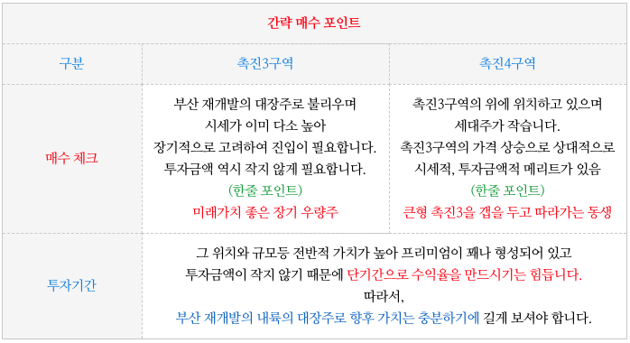- 촉진4구역 재개발은 촉진3구역 재개발의 높은 시세로 인하여 차선책이 될수 있는 곳입니다. |