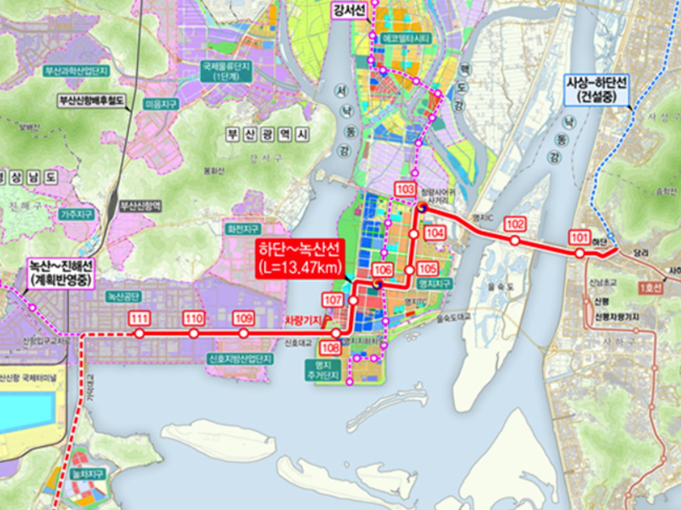 현재 확정되어 있는 사상~하단선만 되어도 2개구간의 환승센터로 접근성이 높아 집니다.