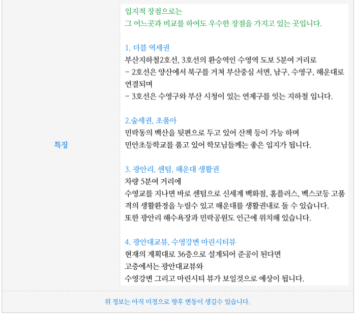 실거주 좋은 수영구의 수영로터리 인근으로 아직 예정이기는 하지만 약 960여세대로 예정되어 있으며
