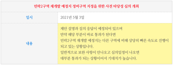 민락2구역 재개발 예정지의 현재 진행상황등은 아래 페이지를 참고 하시면 됩니다.
