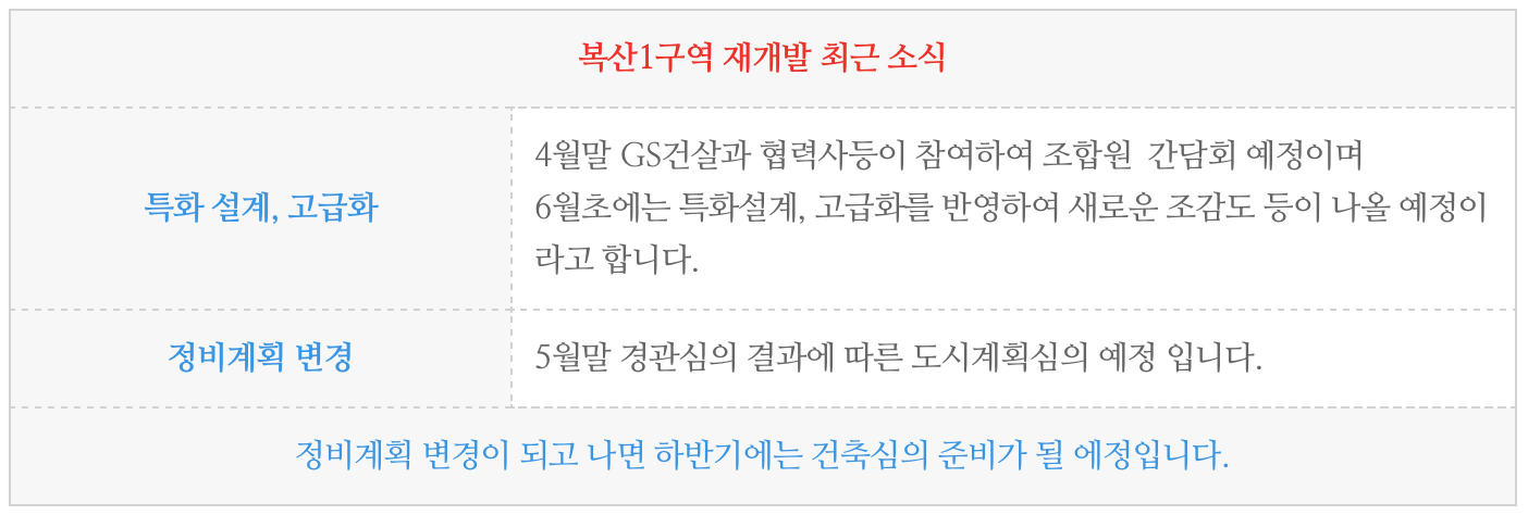 복산1구역 재개발의 진행상황과 세대수 등은 아래 페이지를 참고하시면됩니다.