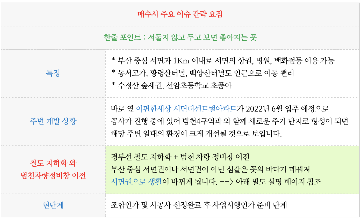 부산 중심 서면권으로의 입지적 장점이 살아나게 될 것이고 주변일대가 크게 변화가 될 것입니다.