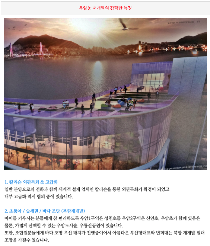 우암1구역 재개발 : 외관특화,고급설계 조감도 및 현 매물