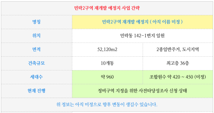 역세권 민락2구역 (가칭) 재개발 예정지 는