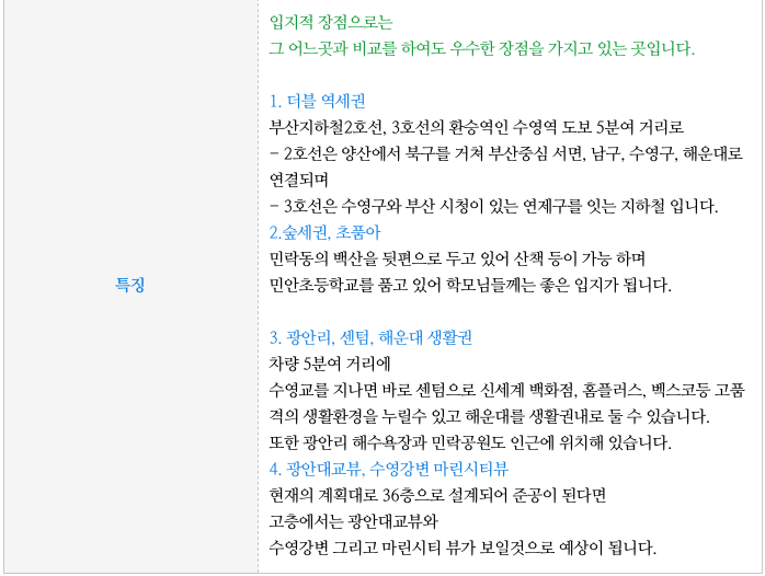 실거주 좋은 수영구의 수영로터리 인근으로 약 960여세대로 예정되어 있으며