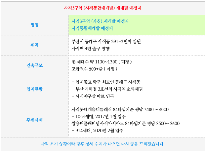 사직통합재개발 (사직3구역) 재개발 예정지는 대해 궁금하신 사항은 연락주시면 자세히 설명 드리겠습니다.