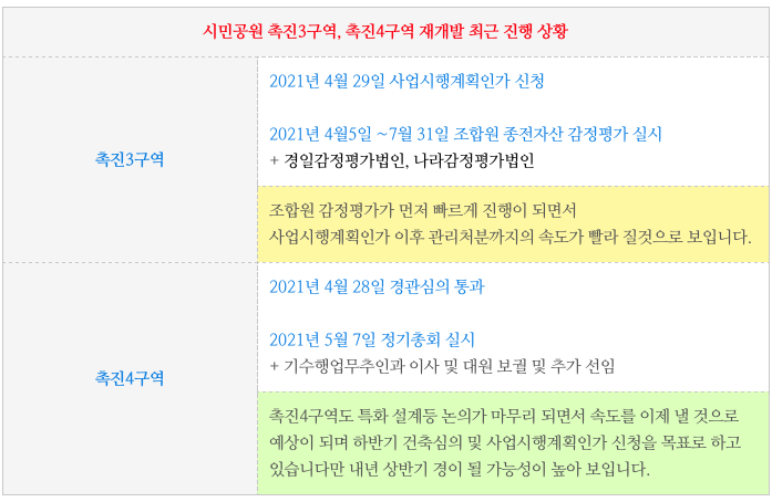 시민공원 촉진3구역 및 촉진4구역에 대한 세대수 및 진행상황등 추가 정보는 아래 페이지를 참고 부탁드립니다.