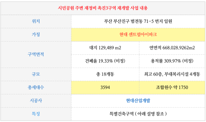 부산 중심에 위치하여 자타공인 내륙지역의 재개발 대장으로 인정을 받고 있는 곳으로