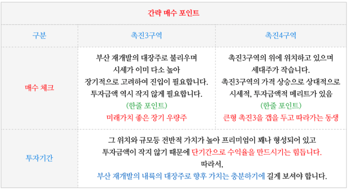 - 촉진4구역 재개발은 촉진3구역 재개발의 높은 시세로 인하여 차선책이 될수 있는 곳입니다. |