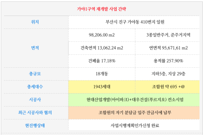 가야1구역 재개발의 진행상황, 각 평형별 세대수등 추가 정보는 아래 페이지 참고 부탁드립니다.