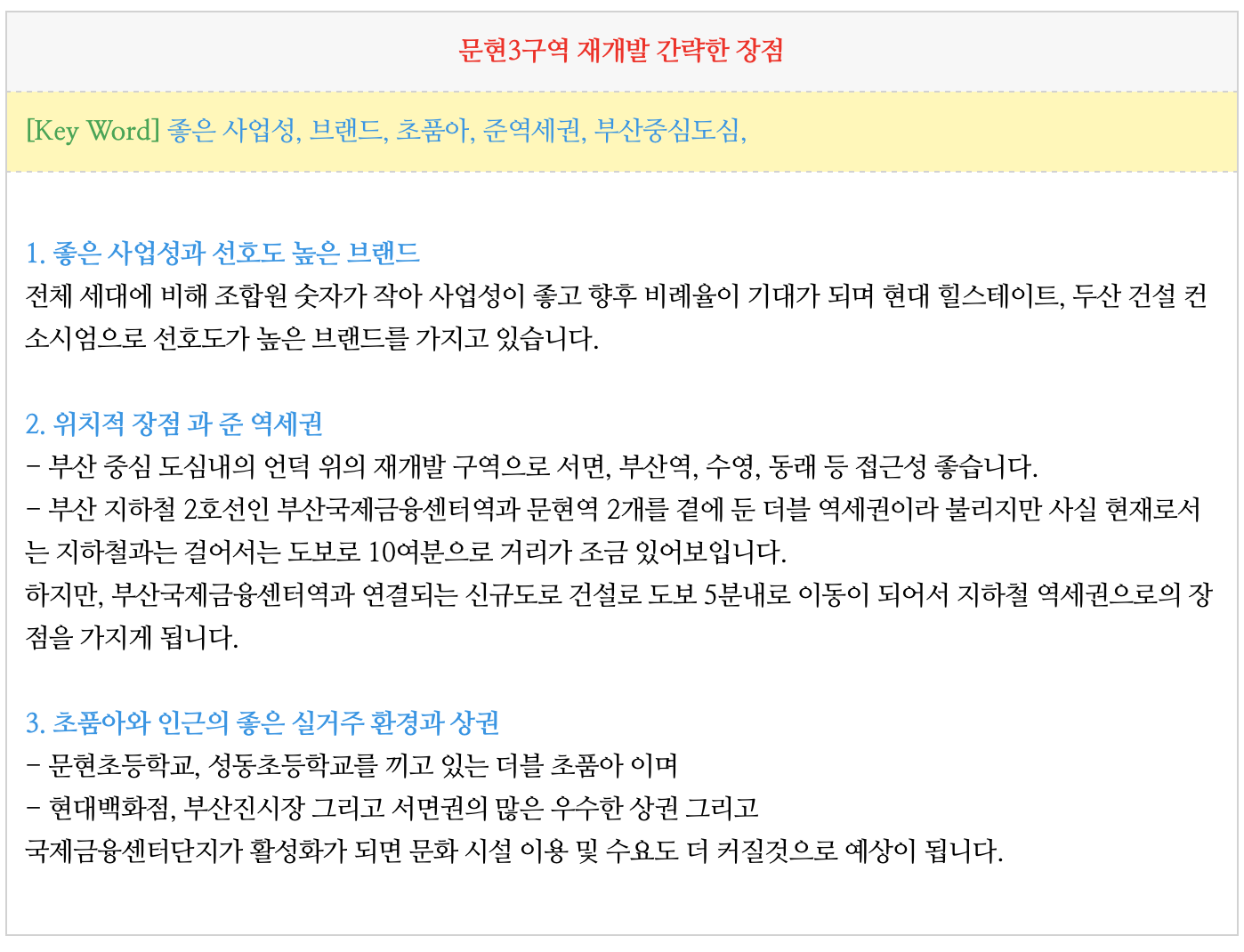 향후, 문현3구역 역시도 특화 제안에 따라 시세 변동이 있을 것으로 기대가 되고 있습니다.