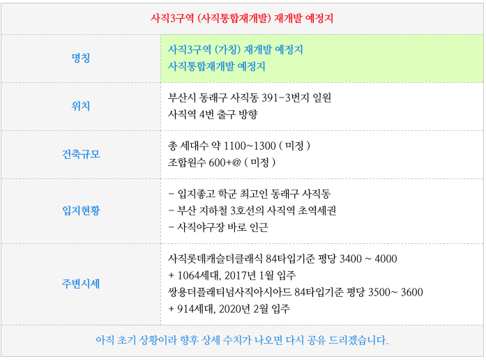 (우수예정지) 역세권 " 사직3구역 (사직통합) 재개발 " 소식과 매물