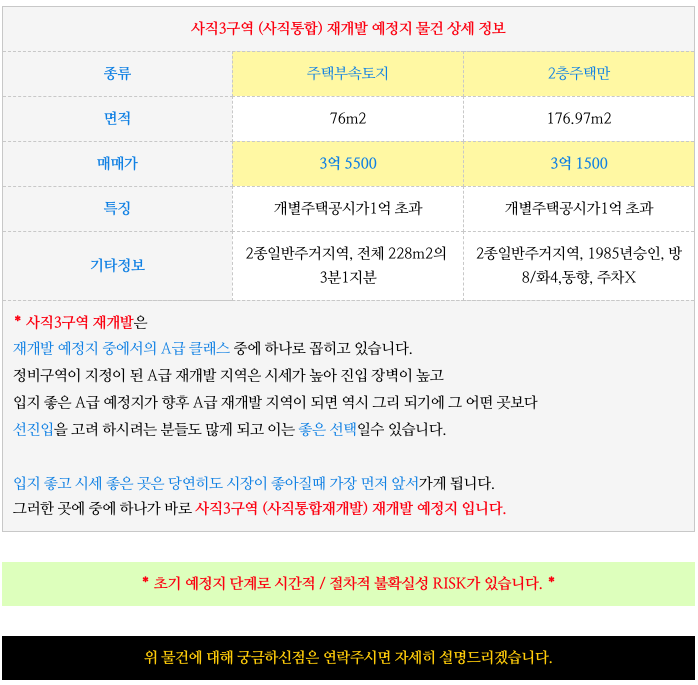 사직3구역 (사직통합재개발) 재개발 예정지 물건을 업데이트해 드리겠습니다.