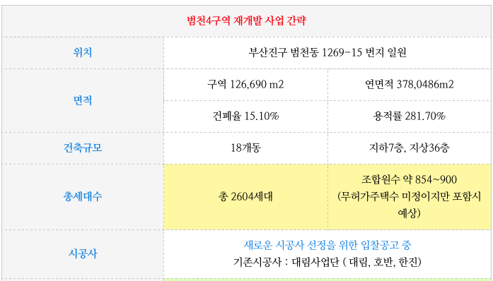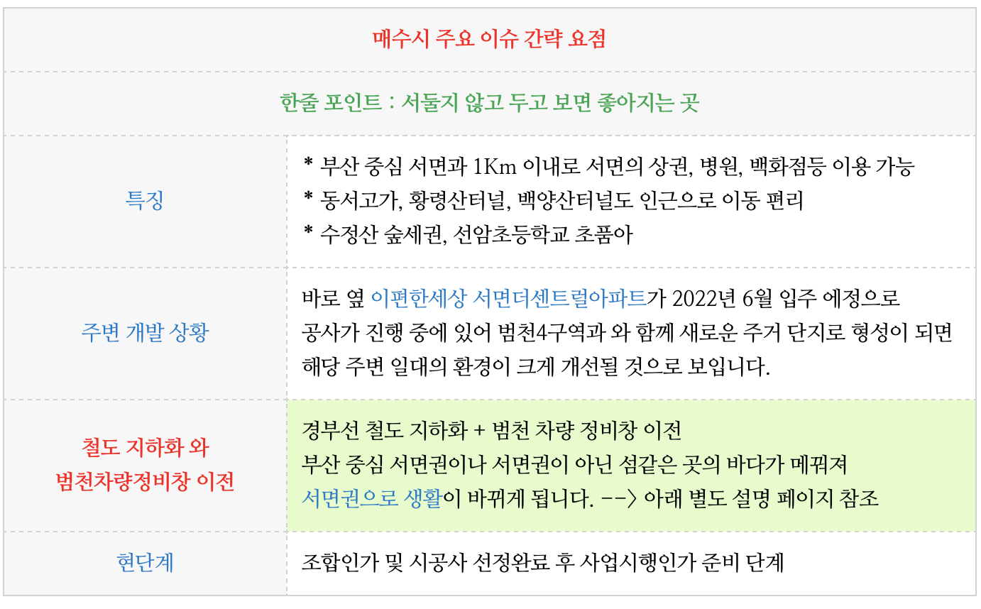 - 범천4구역은 현재의 모습보다는 미래의 변화된 모습이 기대가 되는 곳이며 개발호재의 공사 진행 상황에 따라
