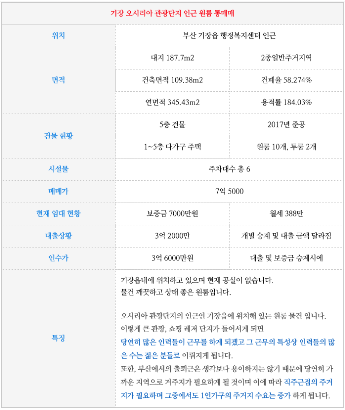 4, 기장 오시리아 관광단지 인근 원룸 통매매
