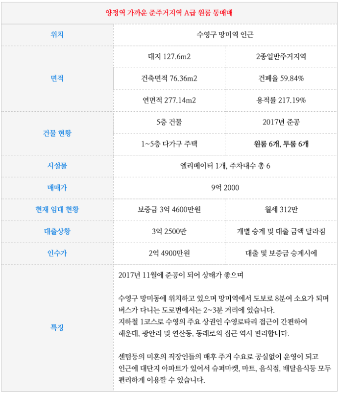 5. 수영구 광안역 도보 5분거리 원룸 통매매