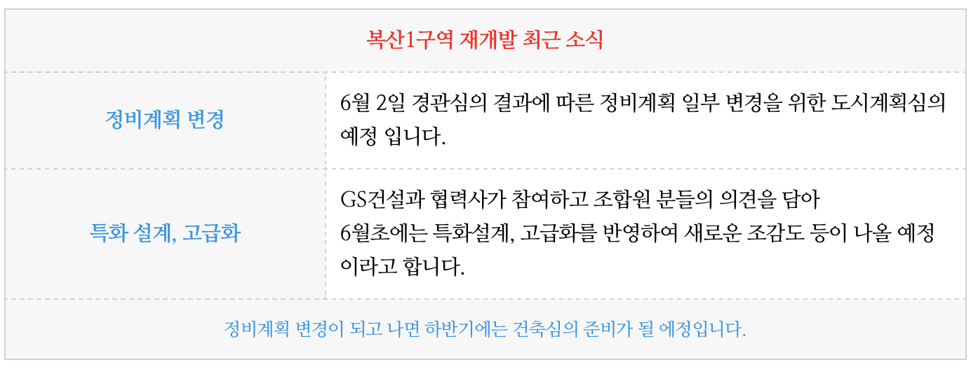 복산1구역 재개발의 최근 소식입니다.