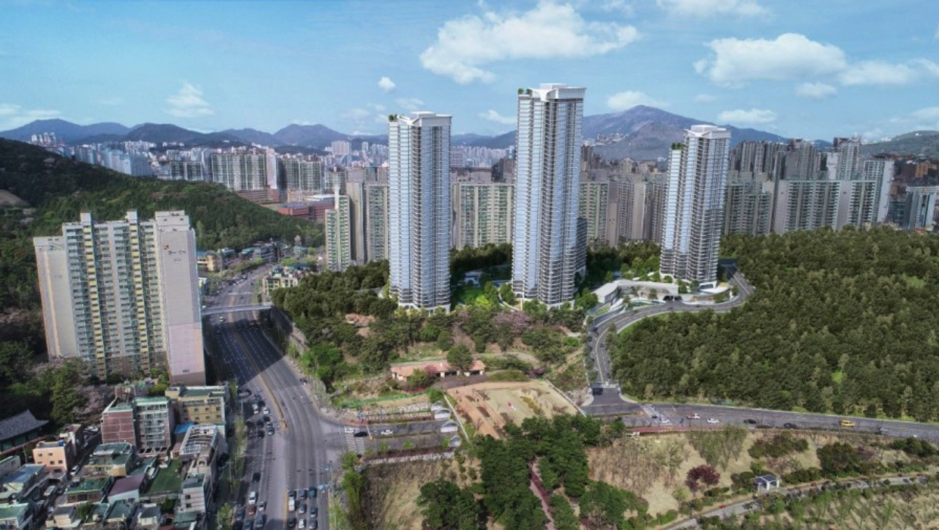 부산 중심도심에 위치하고 시민공원 남서향 방향으로 보는 재개발 구역으로