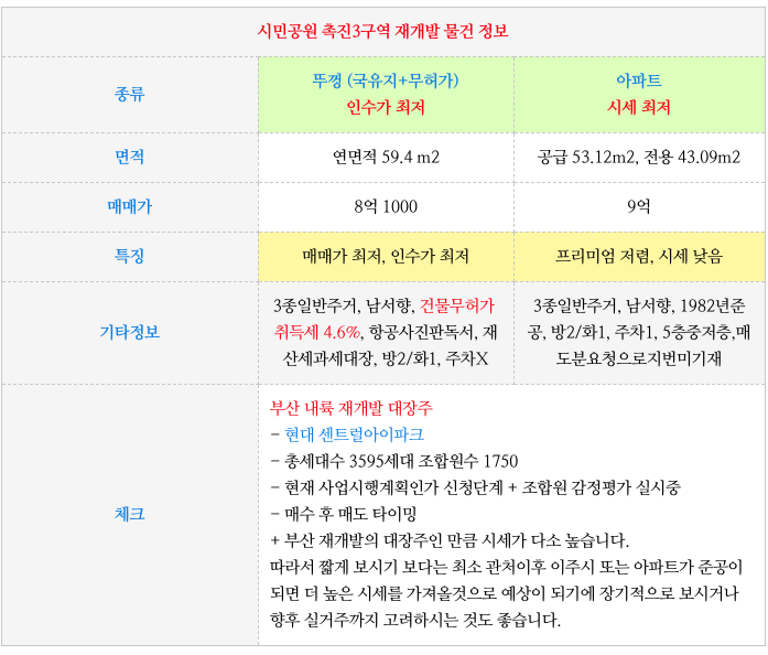시민공원 재개발중에 현재 인수가가 상대적으로 낮아 가성비가 가장 좋은 곳이라고 할수 있습니다.