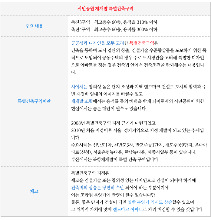 시민공원 재개발 구역들의 통일적인 특징 을 간략히 정리해 드립니다.